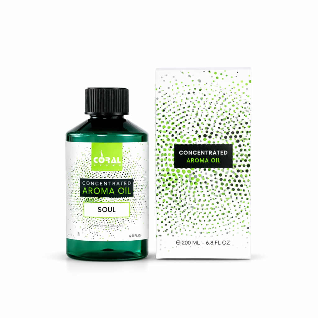 Coral Aroma Soul Aroma Oil is a rich oriental fragrance crafted to create a warm, luxurious atmosphere in any space. The scent opens with a bold blend of frankincense and fruity raspberry layered with dry fruits and soft leather. As the fragrance evolves, elegant floral notes of rose and apricot combine with earthy patchouli to build depth and sophistication. The base settles into a long-lasting fusion of amber, creamy vanilla, musk, and precious oud, delivering a deep, comforting aroma ideal for homes, offices, hotels, and commercial scent diffusers.